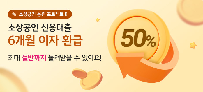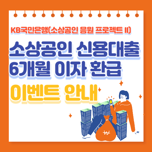 KB국민은행에서는 소상공인 응원 프로젝트로 소상공인 신용대출 6개월 이자 환급 이벤트를 진행하고 있습니다.