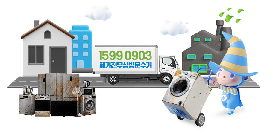 폐가전제품 무상방문수거 서비스는 별도 가입없이, 수수료를 낼 필요없이, 지정된 장소까지 운반하지 않아도 수거 기사가 직접 가정을 방문하여 무거운 폐가전 제품을 수거해갑니다.