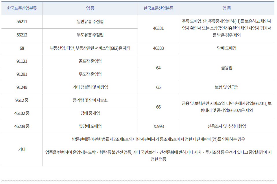 - 보증 제한 업종 또는 사유에 해당하는 기업