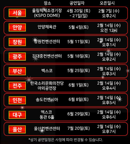 콘서트는 서울에서의 화려한 개막을 시작으로, 부산, 대구, 광주, 대전, 청주, 인천, 울산 등을 비롯한 여러 도시에서 개최될 예정이에요. 각 도시의 공연장은 탁월한 음향 시설과 관객 편의 시설을 갖추고 있어, 최고의 공연을 즐길 수 있는 환경을 제공할 거예요.