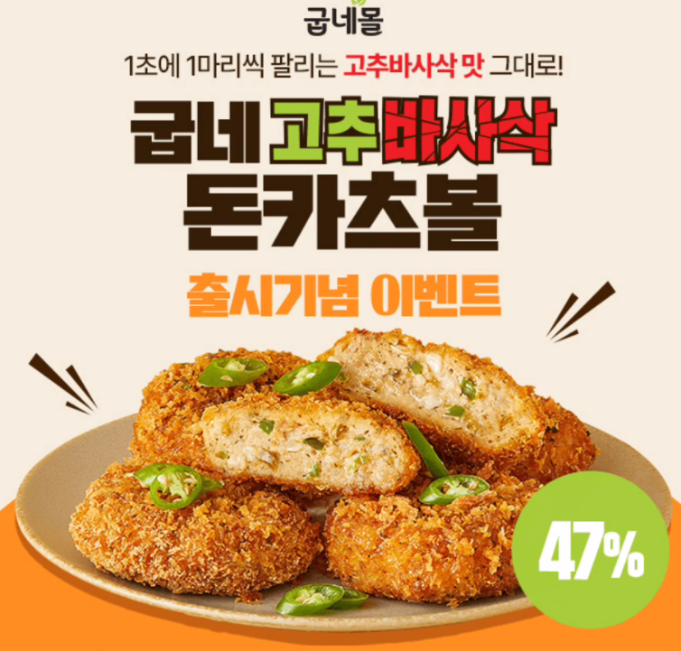 (1) 굽네몰 고추바사삭 돈카츠볼 출시기념 퀴즈풀고 캐시받자!