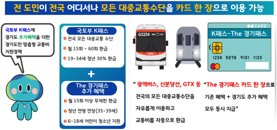 The 경기패스는 경기도민들의 대중교통 이용을 더욱 편리하고 경제적으로 만들어주는 새로운 방안입니다. 이 카드는 교통비를 절약하면서도, 경기도 내외로의 이동을 더욱 원활하게 해주는 매
