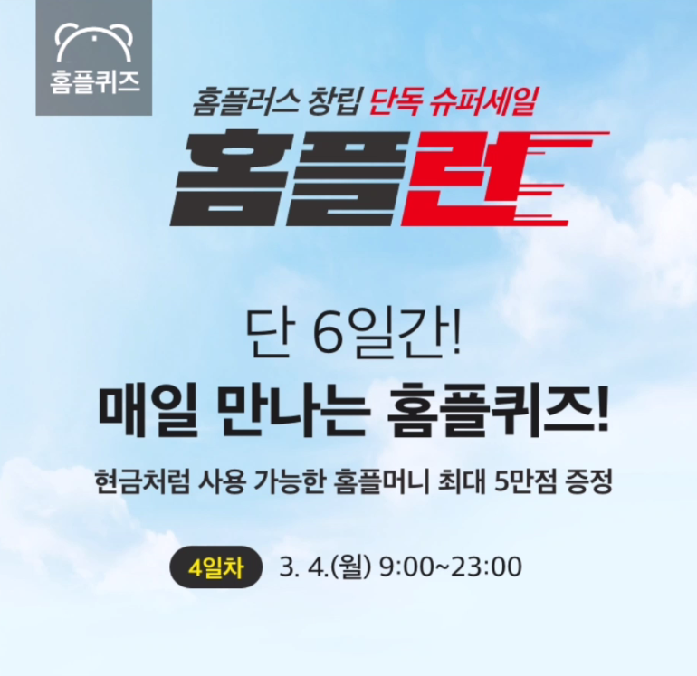 - 퀴즈 이벤트 기간은 2024.03.04(월) 09:00 ~ 2024.03.04(월) 23:00까지입니다.