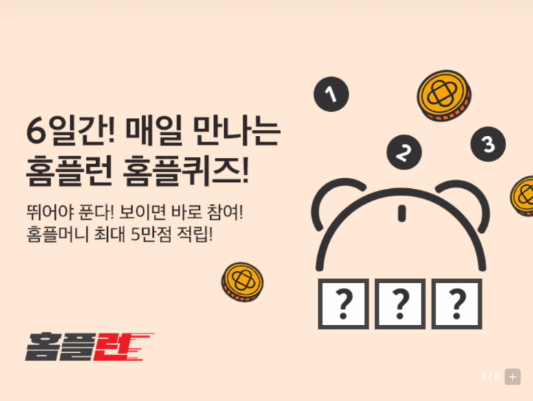 - 정답을 맞히면 홈플머니가 적립됩니다.