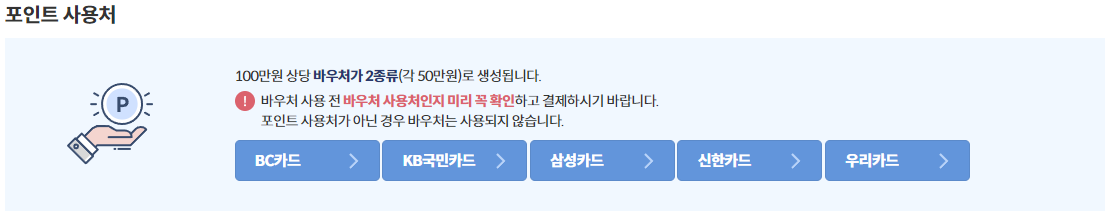 - - 아래 카드사의 본인명의의 카드를 소지하고 있어야 바우처 지급이 가능합니다.