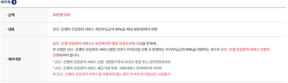서울시에서는 산모와 신생아의 건강을 지원하고 저출생 문제를 해결하기 위해 '서울형 산후조리경비' 사업을 운영하고 있어요. 산모 1인당 산후조리경비를 100만원 지금하는데, 산모 본인 명의 신용(체크)카드에 100만원 바우처 포인트를 지급합니다.(※ 단태아 100만원, 쌍태아 200만원, 삼태아 300만원)