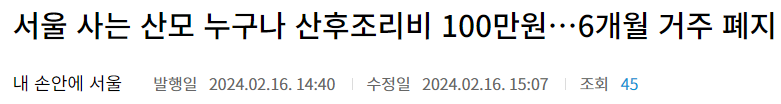 서울시 산후조리비 지원 확대 소개