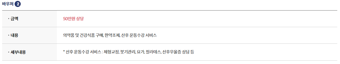 산후 건강관리 서비스, 의약품 및 한약 구매, 산후 운동수강 등 다양한 곳에서 사용할 수 있습니다.