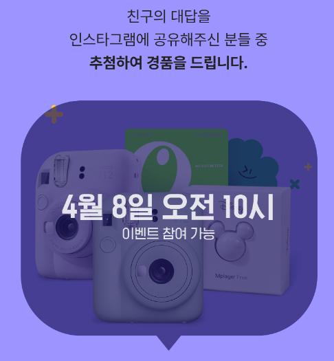 - 경품 추첨(친구의 대답을 인스타그램에 공유) [경품 보러가기]