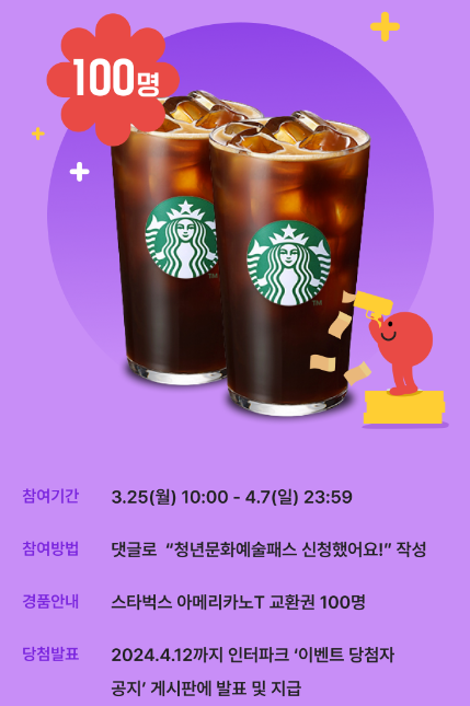 - 커피교환권 지급(댓글을 남기면 100명 추첨)